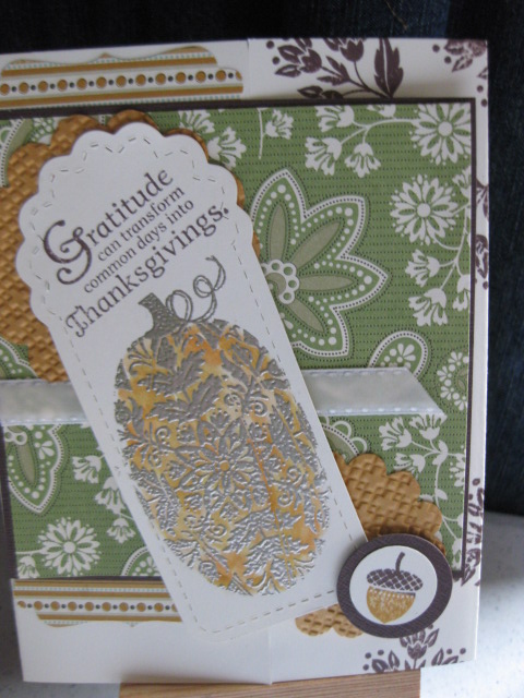 Here is one of the camp cards for this week. It has a lot of texture and interest. It’s with the Jack of all Trades set, Spice Cake DSP and Day of Gratitude set. Hope you can come this week.