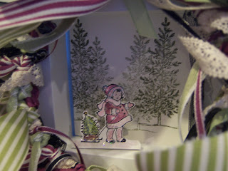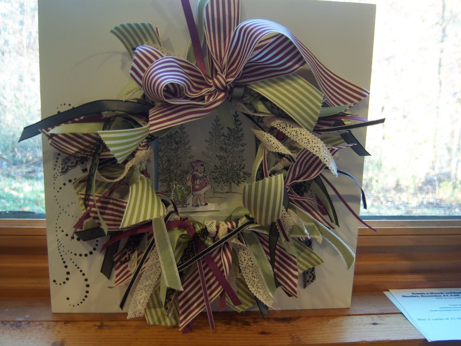 Small Chocolate Chip Dotted Flourish Decor Element 124075 $19.95 and 2 yards of 11 different ribbons to make the wreath.