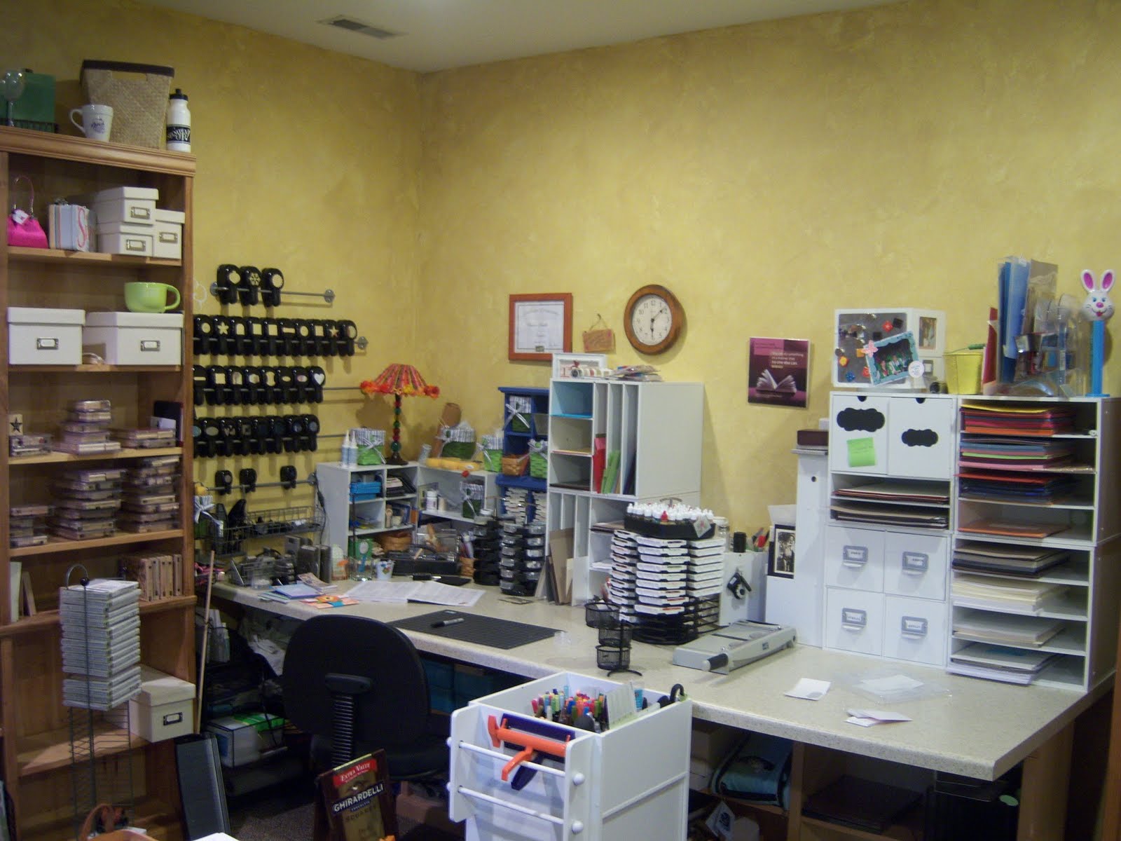 Leave a Comment / By Susan / July 20, 2010 Enjoying my new clean space!! Notice the holder in the lower left. That holds my new clear stamp sets. And it holds over 40 of them! Have a great day and hope you get to stamp! Blessings, Susan