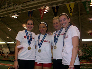 Kayla sang the National Anthem beautifully and then ran the anchor leg of the 4 x 4 relay. She took over a second off her best time! She ran her 400 in 56 seconds! Dang girl. Here is the 3rd fastest 4 x 4 team in the Big Ten! Congratulations girls!