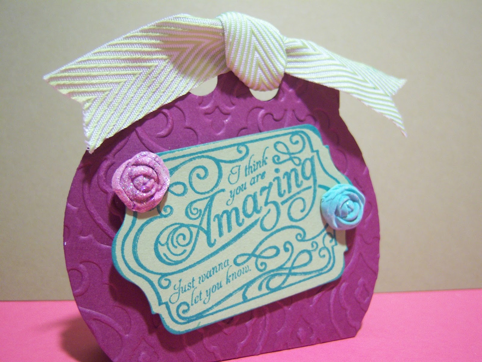 I’m always looking for the perfect ‘goodie package’  This is done with a framelit some beautiful ribbon and a great saying.  Add some bling flowers and it’s perfect!  Hope you get to camp to see how it’s done.