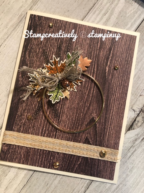 By adding the Gilded gems, ribbon, and the punches. To the Designer Series paper here is a wreath on a door 😊. It’s a fall party.  Oh, and add a acorn trinket takes it to a new level.