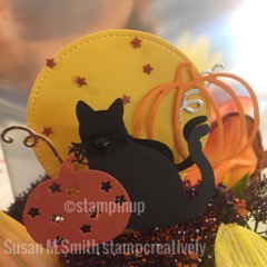 Stampin’ Up! Cat punch and Patterned Pumpkin Thinlits Leave a Comment / By Susan / September 5, 2017 Bonus camp project. Don’t miss this adorable candy favor Have a great day and hope you get to stamp! Blessings, Susan