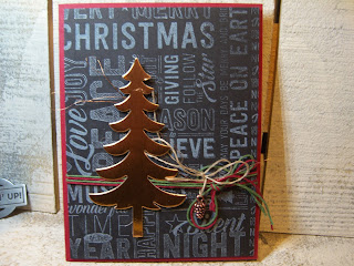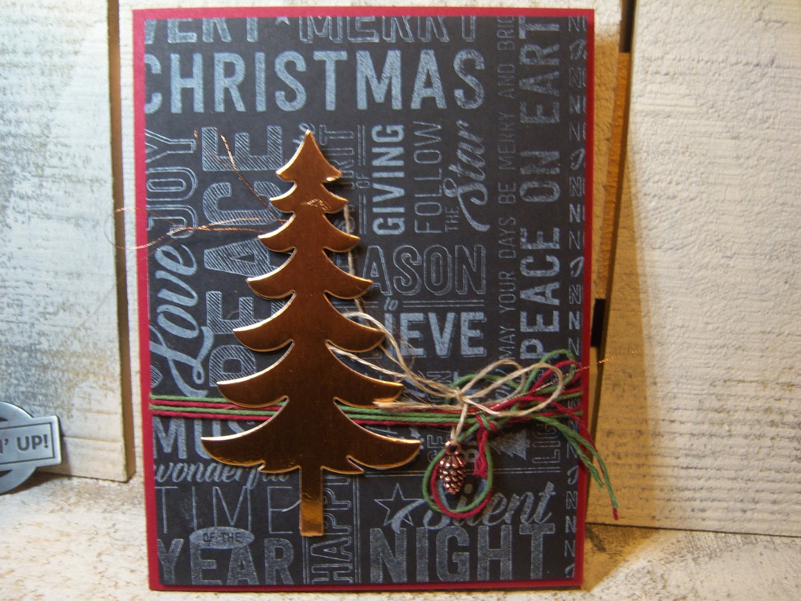 The technique is a great look and so many things you can do with it. Done with a craft white stamp pad, I love the copper tree on top. Camp project number 1