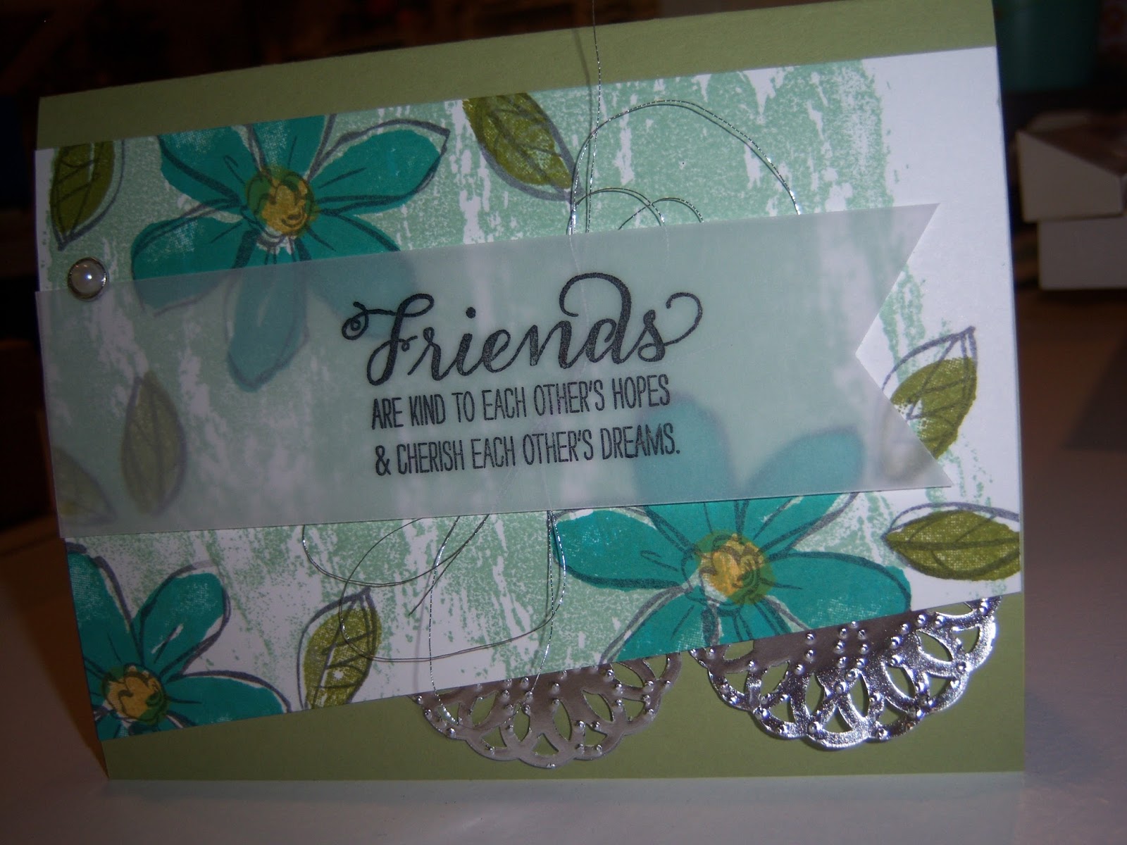 Stampin’ Up! Garden in Bloom Leave a Comment / By Susan / July 14, 2015 Camp card #2 – Love the stamp set and the Metal Rimmed Pearls & Metallic Foil Doilies are two of my favorite accessories. Have a great day and hope you get to stamp! Blessings, Susan