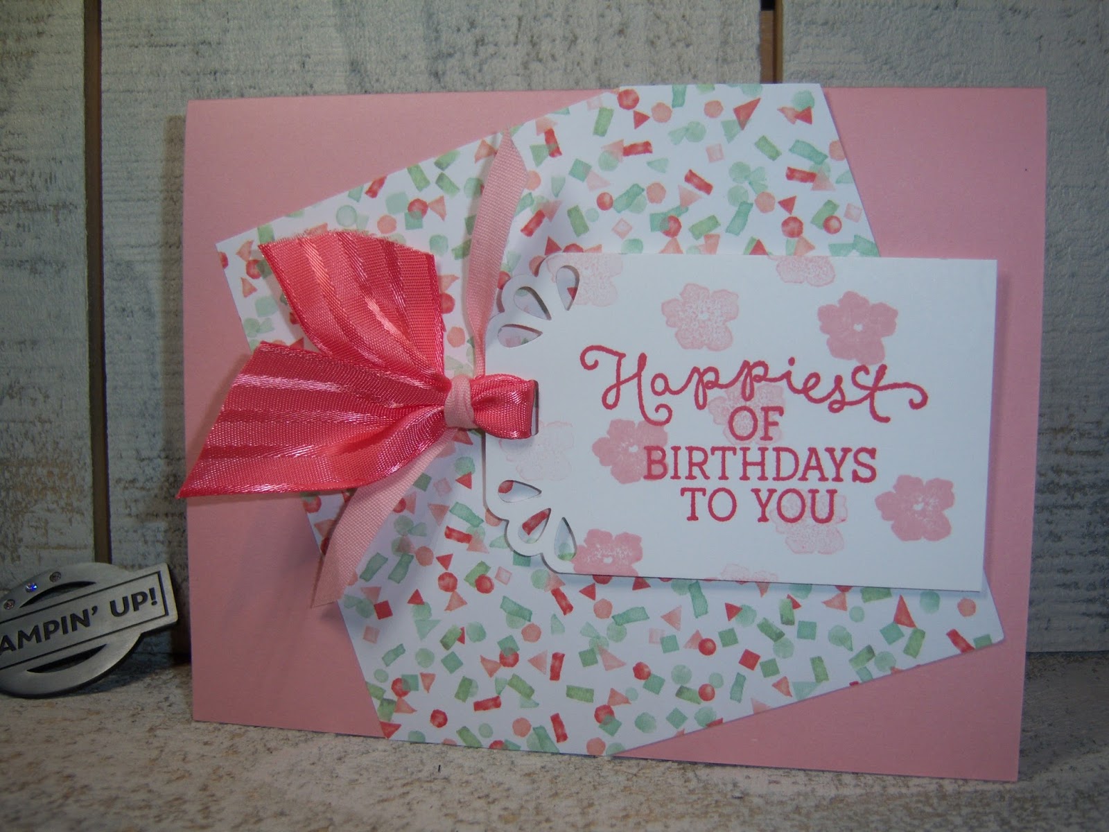 The coordinating product makes this card look great. The Birthday Bouquet Designer Series Paper coordinates with the stamp set and the ribbon. Stampin’ Up! makes matching easy.