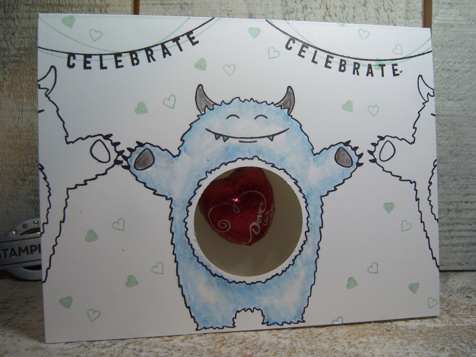 Yes, this adorable monster has a hidden treasure in his tummy. And loved using the Watercolor Pencils to make him even cuter. You can’t see, but he does sparkle thanks to Wink of Stella. The banner and hearts come from the Any Occasion set that you can get FREE with a $50 purchase. Sale-A-Bration is a wonderful time of the year!