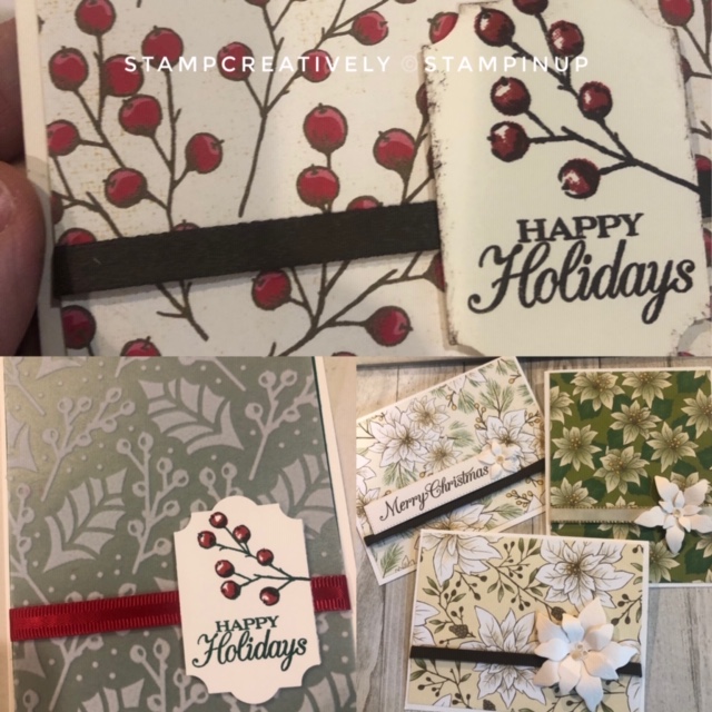 Working on some Christmas Cards for my Stamp All Day. Well, I’m not sure how we can do it this year, but here are 5 quick cards with the same stamp set and some of the wonderful Designer Series Paper.
