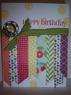 Here is one of my favorite Stampin’ Up! designer Series papers that we are about to say good bye to. And the Curly Cute words are a set I use a lot. Add some Lucky limeade ribbon and the Builder brads and small smashed bottle cap and you have a card that’s elements will be gone soon.
