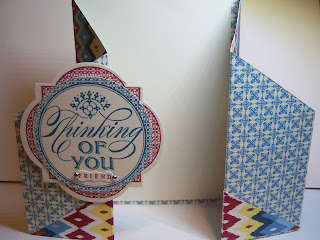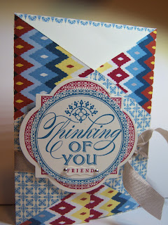 I have a downline event this week where we are doing show box swaps. This is a card Bonnie made for us at Regionals and I can’t wait to show my friends how easy it is! Always looking for that easy Wow card. It’s the Parkers Patterns Designer Series Paper and the Just Thinking stamp from the Spring Catalog