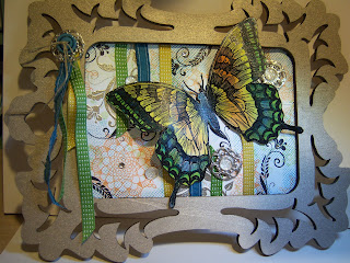 It is always a challenge to make a little wall art. This is the Swallowtail from the Spring Catalog and then embellished with LOTS of goodies from my desk. The laser cut frames are so easy to work with. Looks like a fun group project, I’m sure everyones will be different.