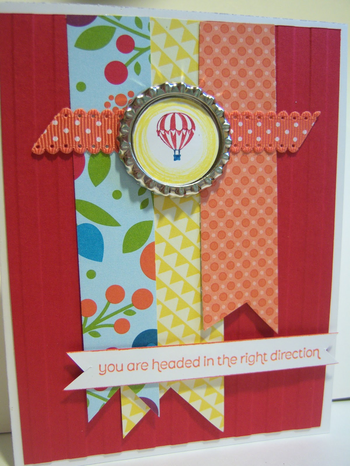 I needed some graduation cards and didn’t have a set but I found the prefect words in the Wishes You Way set in the Spring catalog, added a Soda Pop Top and the hot air balloon from the Collage Curios set and it’s perfect! I will use the Summer Smooches for girls and Parker’s Patterns Desinger Series paper for the boys.