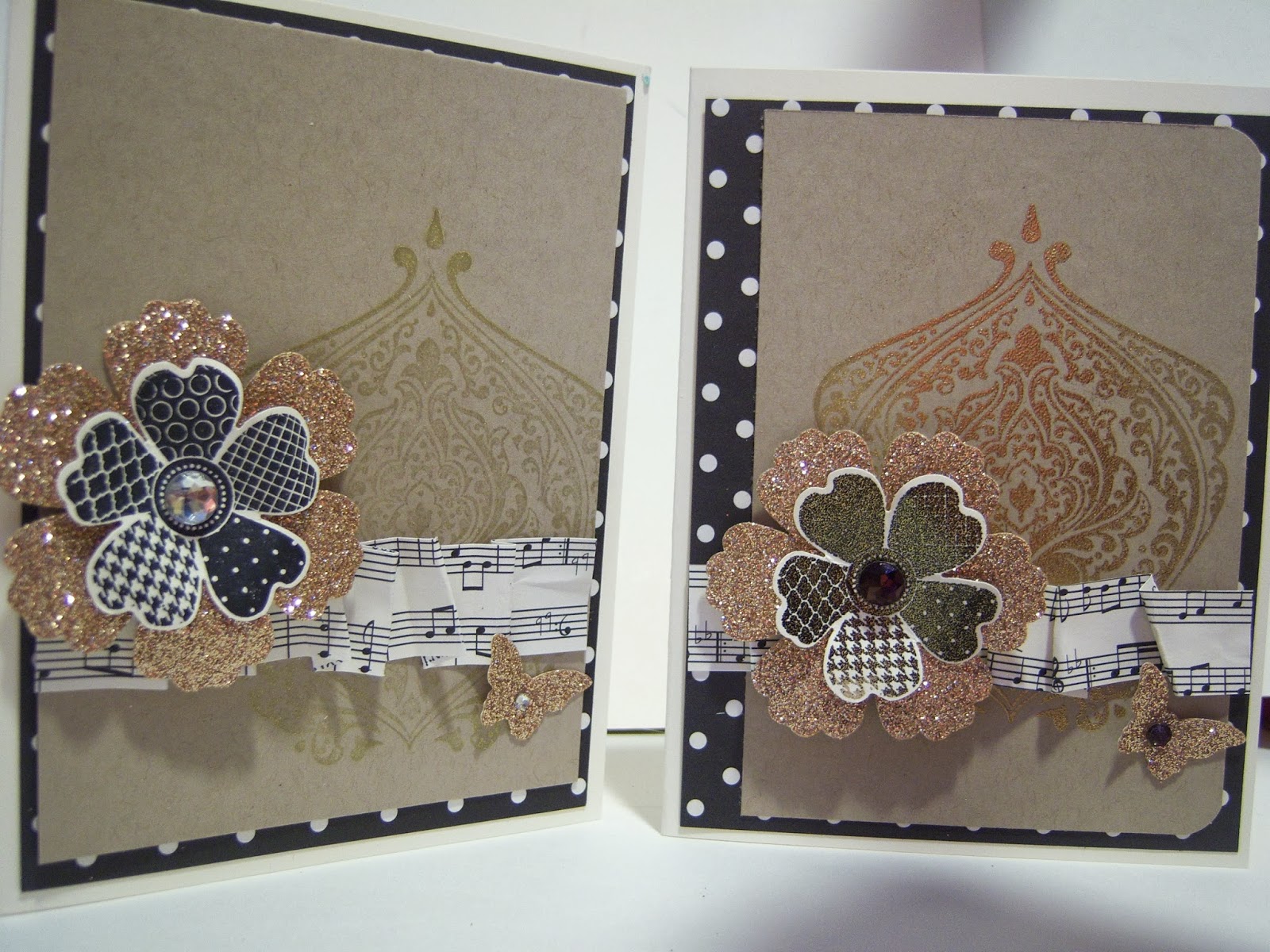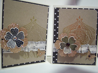 Like I said in my e-mail, camp is going to be a little Step Up! I have some great cards that we will be doing, just a Step-Up! The card on the left is my version of a Theresa Hill card that is beautiful, I just added some gold embossing powder, colored the rhinestone, off set the paper, rounded the corners and embossed the flower. It really sparkles. Some simple tricks that will add to your card with product you might have on hand.