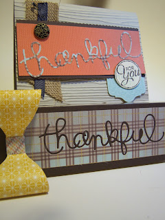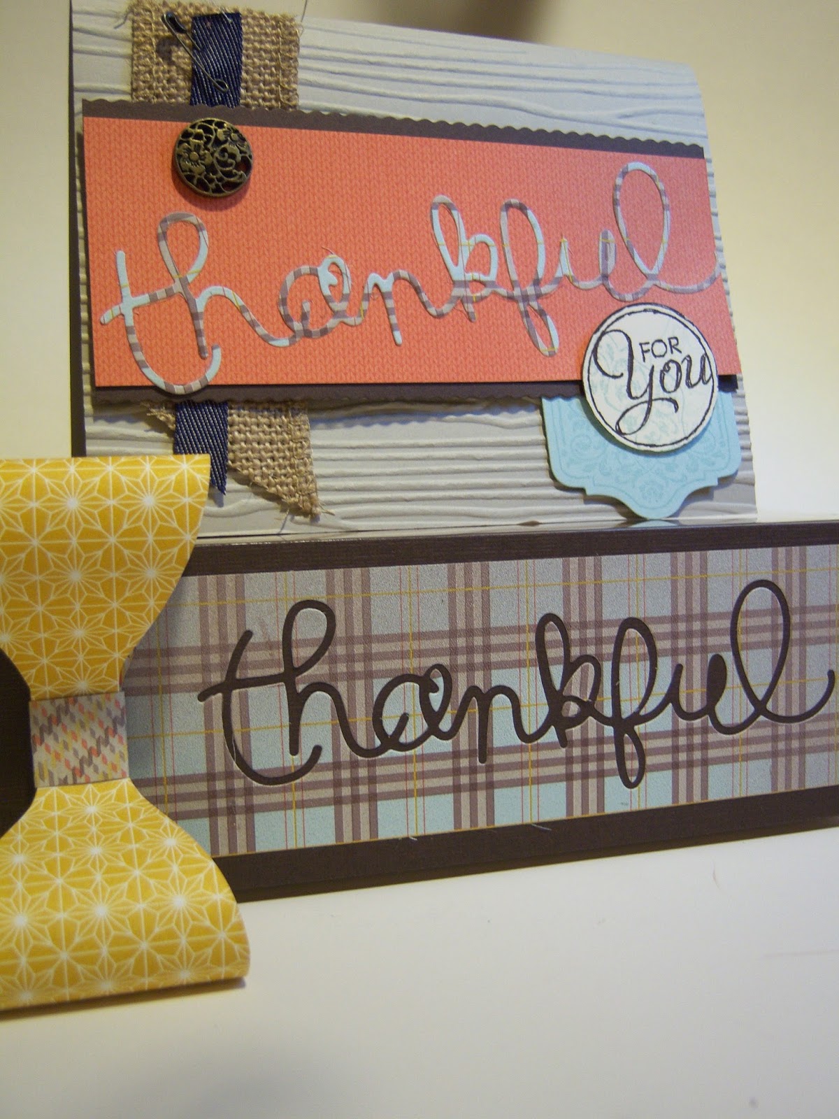 This is two projects and one thinlit. I ran the thinklit through the Big Shot to make the bottom project then took the thankful out for the top. If that doesn’t make since, e-mail me and I’ll explain. It was a favorite camp project.