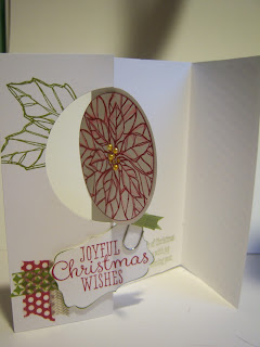 Another project with the Thinlit card dies.  This one is Christmas.  Add some Washi tape, Designer Series paper, the bow embellishment and some colored pearls and you have a fun card to send to your friends.