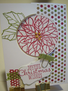Another project with the Thinlit card dies. This one is Christmas. Add some Washi tape, Designer Series paper, the bow embellishment and some colored pearls and you have a fun card to send to your friends.