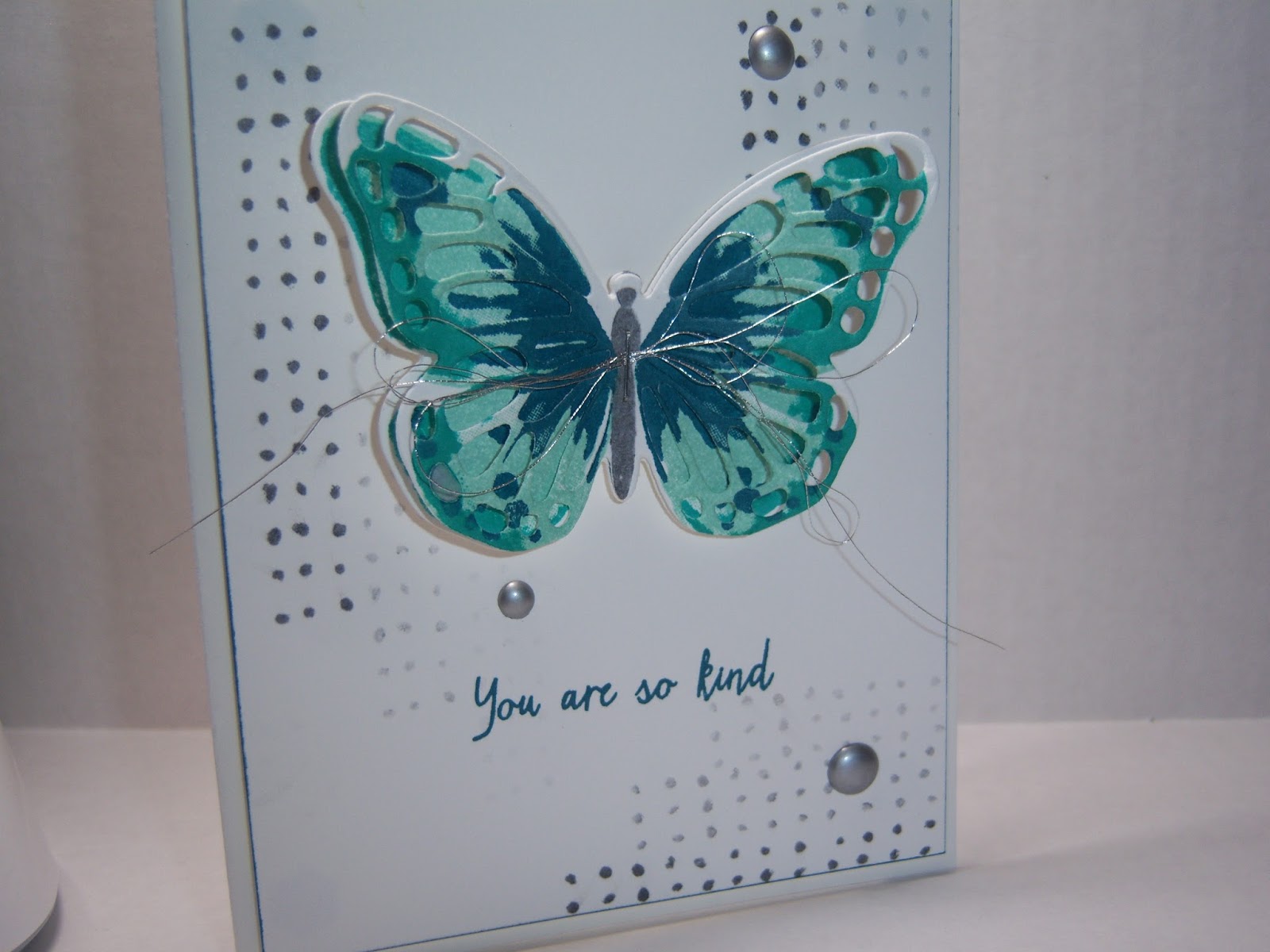 Can we get though butterflies? Here was a camp favorite. Pool party, Bermuda Bay and Island Indigo make up this butterfly. With the new Metallic Thread in the center.