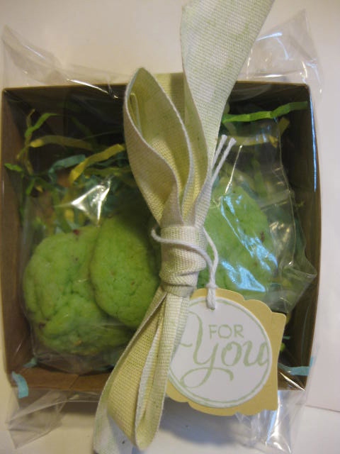 We had a wonderful day Saturday with demonstrators sharing ideas and getting ready to kick off a new Stampin’ Up! catalog. What I love about being a demonstrator is all the fun ideas that we share. Deb brought me these, because she knows I’m quite the cookie monster. And she was kind enough to share the recipe too. I love my job! Thanks Deb!