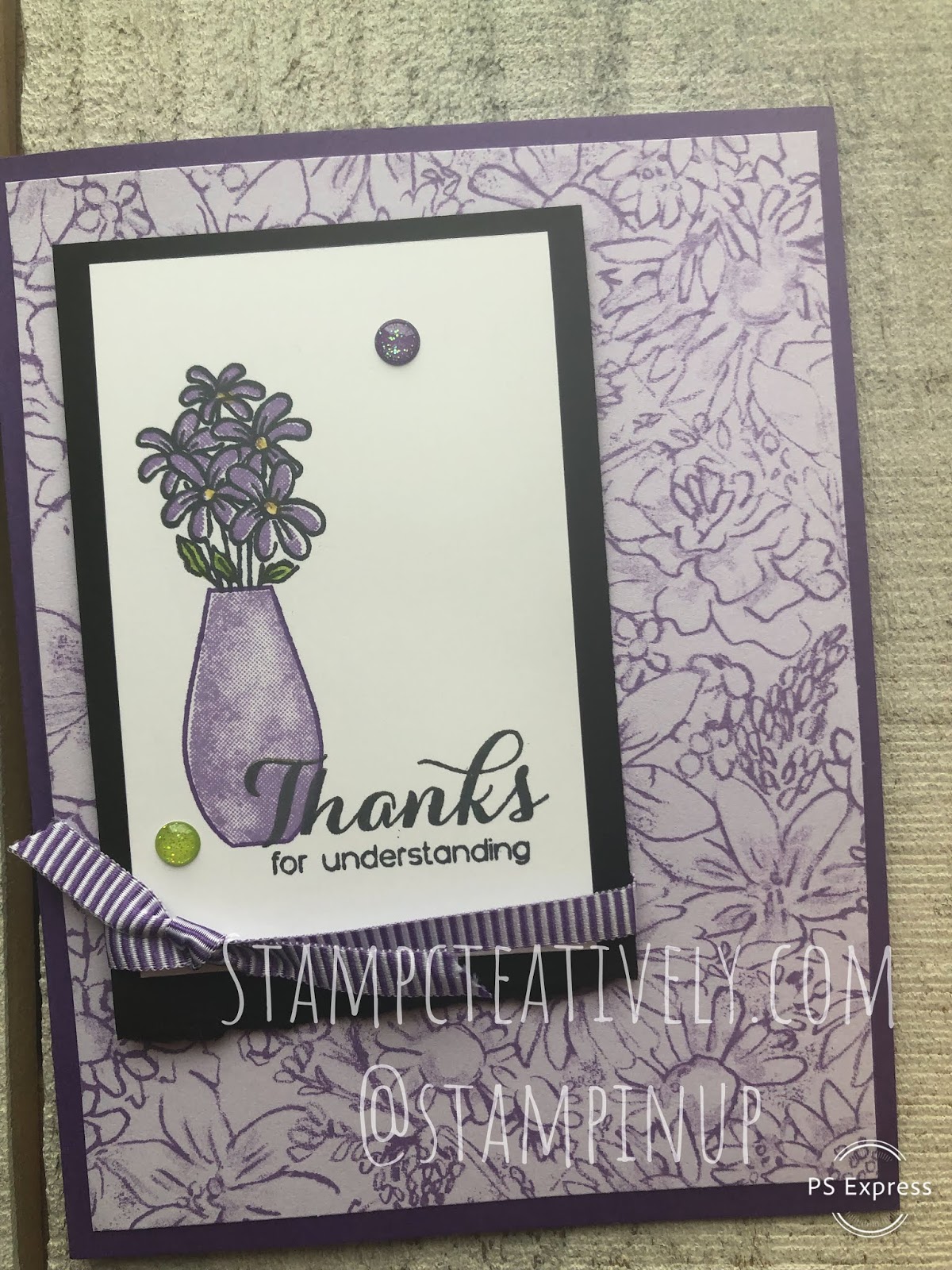 I combined the Vibrant Vases from the Occasions catalog with the Varied Vases from the annual catalog. Mounted it on the Botanical Butterflies Designer Series Paper from Sale-a-Bration and you have a great thank you card